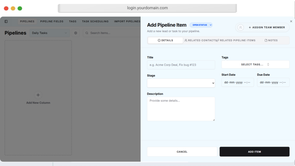 Track and manage every lead through customizable sales pipelines, helping you organize deals, monitor progress, and close more clients efficiently from one place. πŸš€